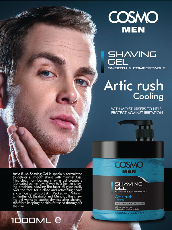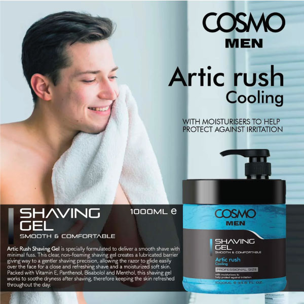 Artic Rush Shaving Gel is specially formulated to deliver a smooth shave with minimal fuss. This clear, non-foaming shaving gel creates a lubricated barrier giving way to a gentler shaving precision, allowing the razor to glide easily over the face for a close and refreshing shave and a moisturized soft skin. Packed with Vitamin E, Panthenol, Bisabolol and Menthol, this shaving gel works to soothe dryness after shaving, therefore keeping the skin refreshed throughout the day.
