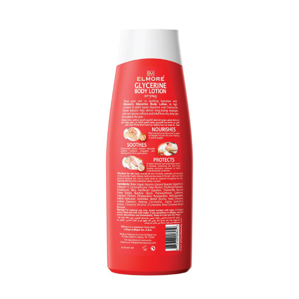 Nourish your skin deeply with Elmore Glycerin Body Lotion. This 400ml lotion is crafted to provide intense hydration without leaving a greasy residue. Its formula, rich in glycerin, softens and smoothens the skin, ensuring long-lasting suppleness and a healthy glow.