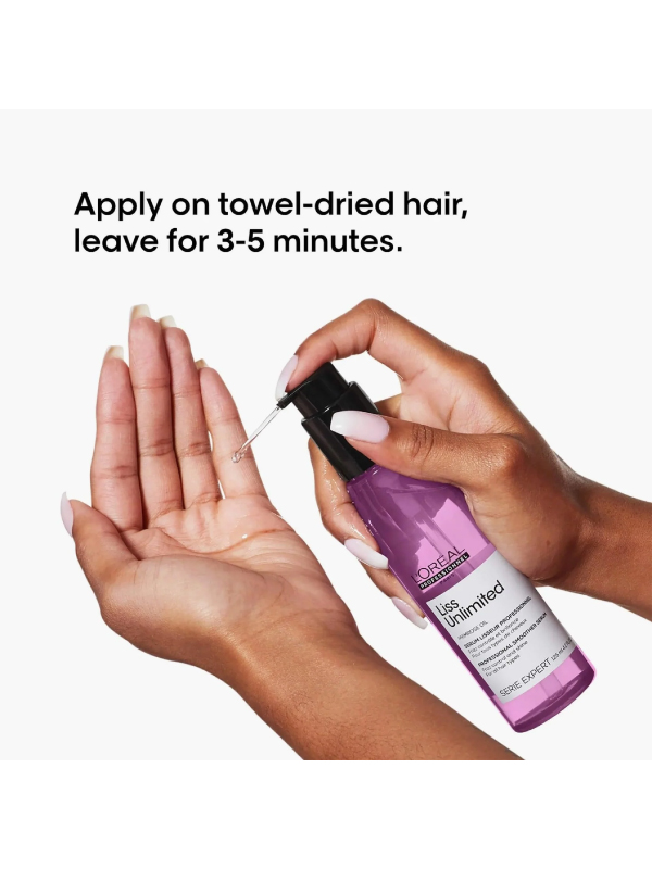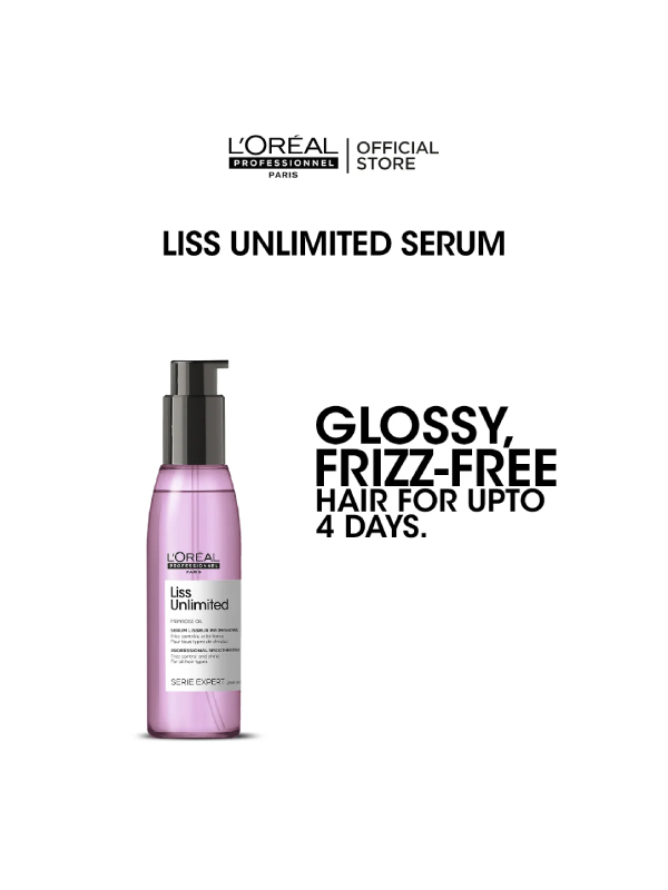 L’Oréal Professionnel’s Serie Expert Liss Unlimited 125ml product is a shine-perfecting blow-dry hair oil designed to transform frizzy and rebellious hair into a smooth, sleek, and shiny finish. Enriched with Evening Primrose Oil and Omega-6 fatty acids, this lightweight, water-soluble formula creates a protective anti-humidity shield, strengthens hair, and makes it easier to manage, brush, and blow-dry. It is used on damp or dry hair to provide long-lasting frizz control and a polished, salon-like look.