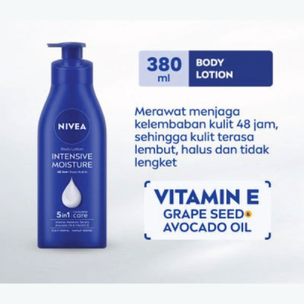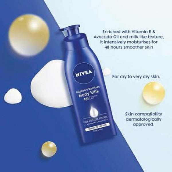Benefit from more moisturized and softer skin for 48 hours! Enriched with Intense Moisture Serum, avocado oil &vitamin E, NIVEA Intensive Moisture Body Lotion men offer 5in1 Complete Care Intensive moisture for 48 hours, Protects skin from drying out, Skin feels soft, Skin looks healthy, Light formula and texture, quickly absorbed and not sticky.