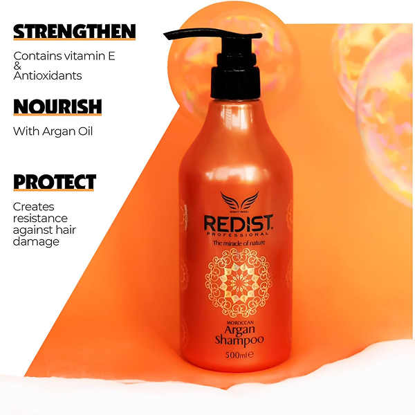- NOURISHING FORMULA WITH PURE MOROCCAN ARGAN OIL – Redist Hair Care Shampoo Argan Oil 500ml is enriched with premium Moroccan argan oil, one of nature’s most powerful ingredients for restoring strength, moisture, and softness. This deeply nourishing shampoo penetrates the hair fibre to repair dryness and damage caused by heat styling, colouring, or environmental exposure, leaving your hair silky, smooth, and naturally revitalised.