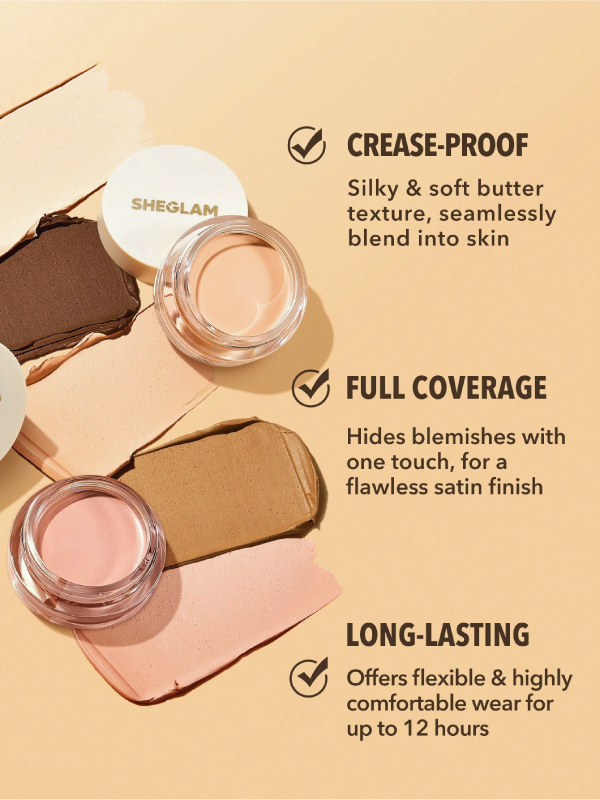 Forget the photo editing software and opt for this IRL quick solution instead! Featuring a high coverage, buttery texture, and velvet matte finish, our SHEGLAM Rapid Retouch Cream Concealer melts on your skin, giving it a silky and luxurious skin-like feel! Its hydrophobic and lipophilic properties make it the perfect water-resistant, non-cakey, and transfer-proof full-coverage option for all-day wear.