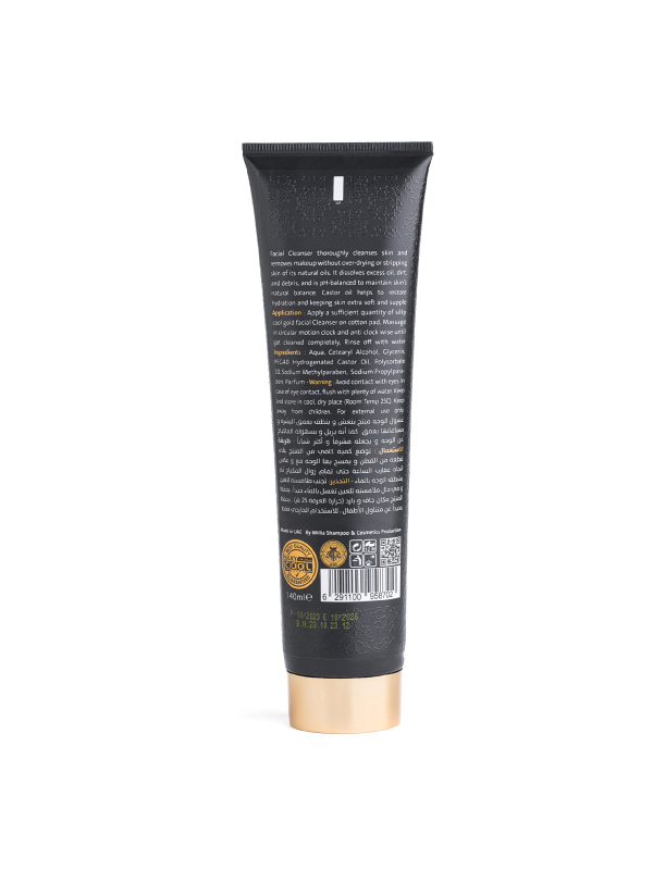Gold Facial Cleanser, with Glycerin and Castor Oil removes makeup, dirt and impurities without stripping skin of its natural oils. It helps maintain PH balance of skin and restores hydration.